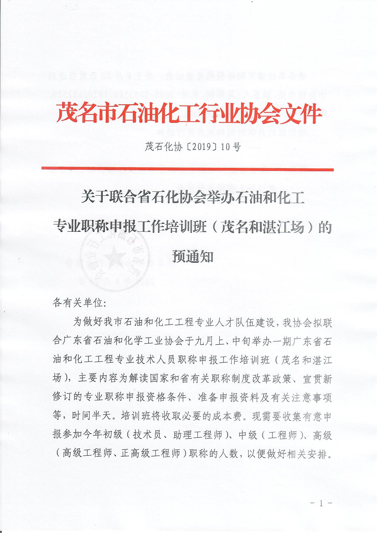 【茂石化協(xié)〔2025〕3號】關(guān)于舉辦2024年度市化工輕工環(huán)保中(初)級專業(yè)職稱評定申報培訓(xùn)班的通知
